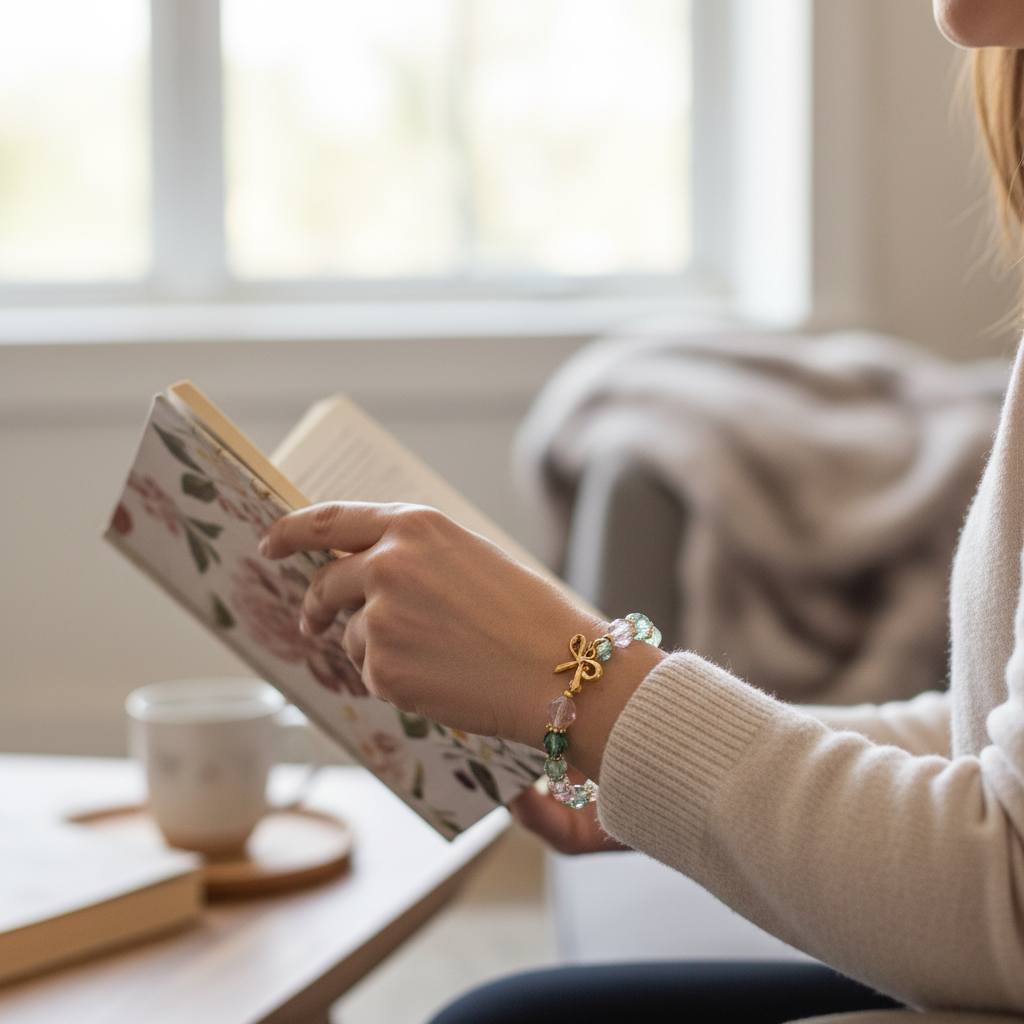 Elevate your daily safety with the Golden Bow Stretch Medical ID Bracelet. Designed for those who refuse to sacrifice style for functionality, this elegant piece features a sophisticated palette of faceted seafoam, blush, and iridescent chrysolite crystals.